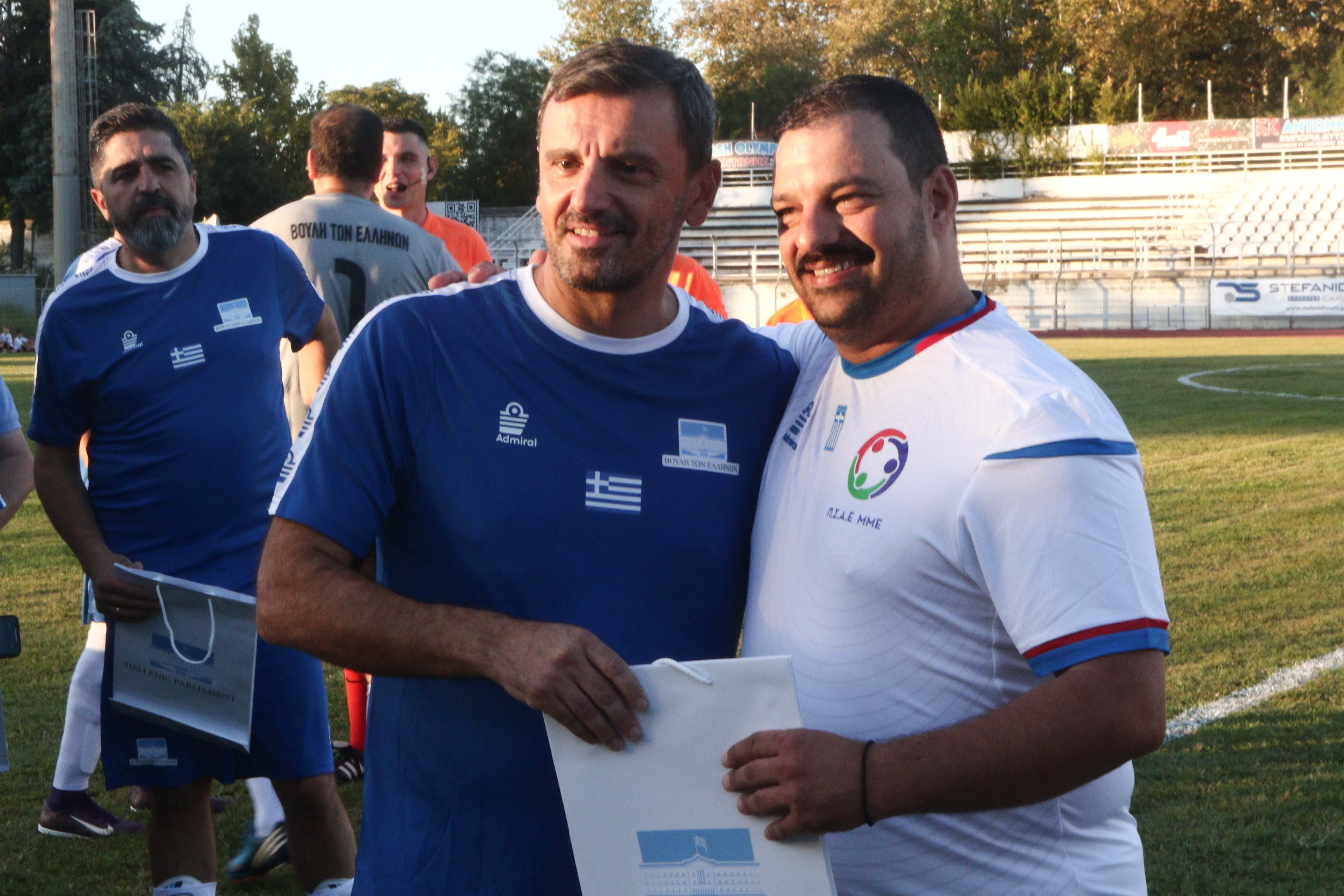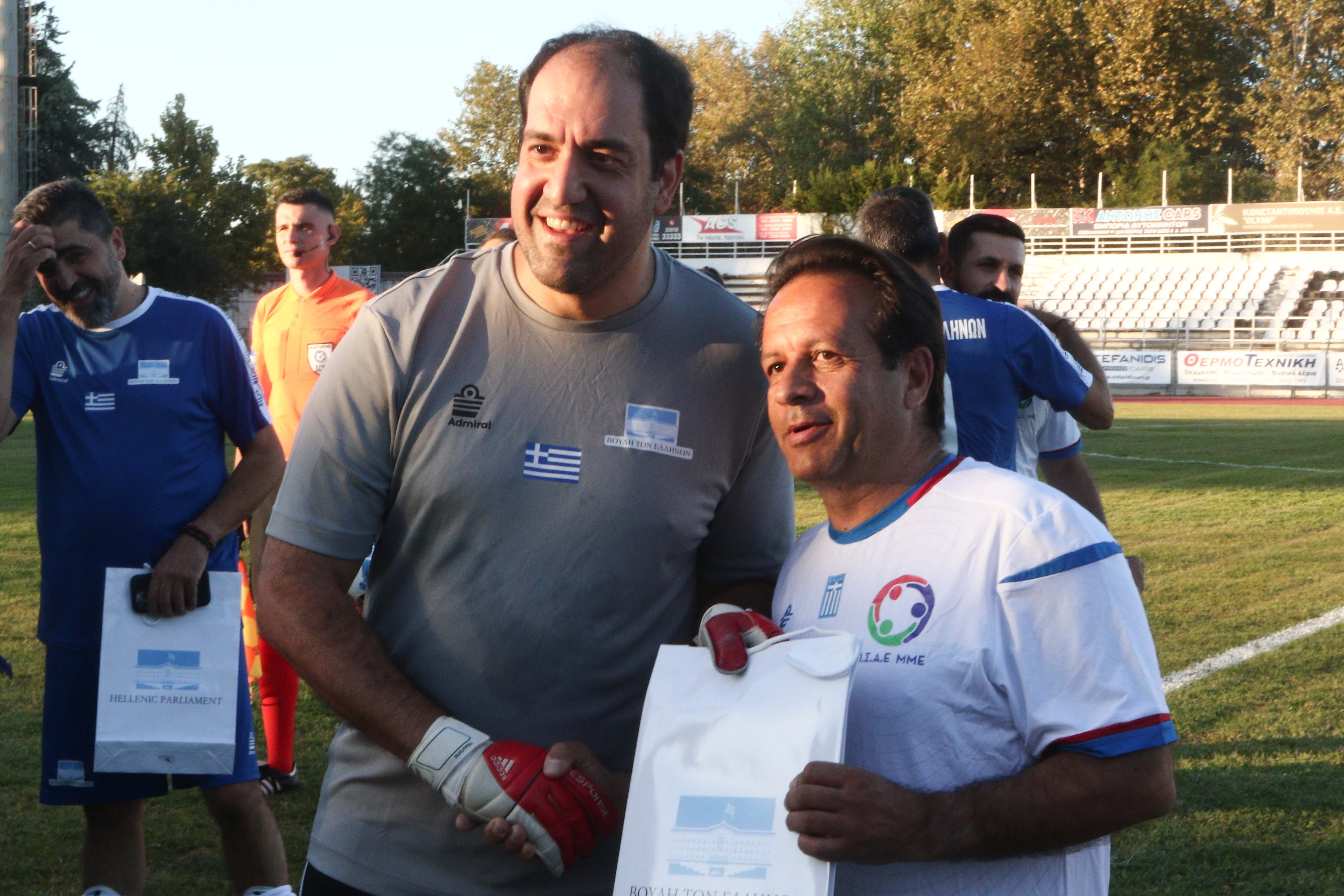 Σε φιλανθρωπικό αγώνα ποδοσφαίρου που έγινε στο δημοτικό στάδιο της Κατερίνης στις 19 Σεπτεμβρίου συμμετείχε η επίλεκτη ομάδα του επίσημου Πρωταθλήματος Τύπου, του Πανελλήνιου Συλλόγου Αθλούμενων Εργαζομένων στα μέσα ενημέρωσης (Π.Σ.Α.Ε. ΜΜΕ), με αντίπαλο την αντιπροσωπευτική ομάδα βουλευτών του ελληνικού κοινοβουλίου, έπειτα από κάλεσμα του βουλευτή της Νέας Δημοκρατίας στην Περιφερειακή Ενότητα Πιερίας, Σπύρου Κουλκουδίνα.