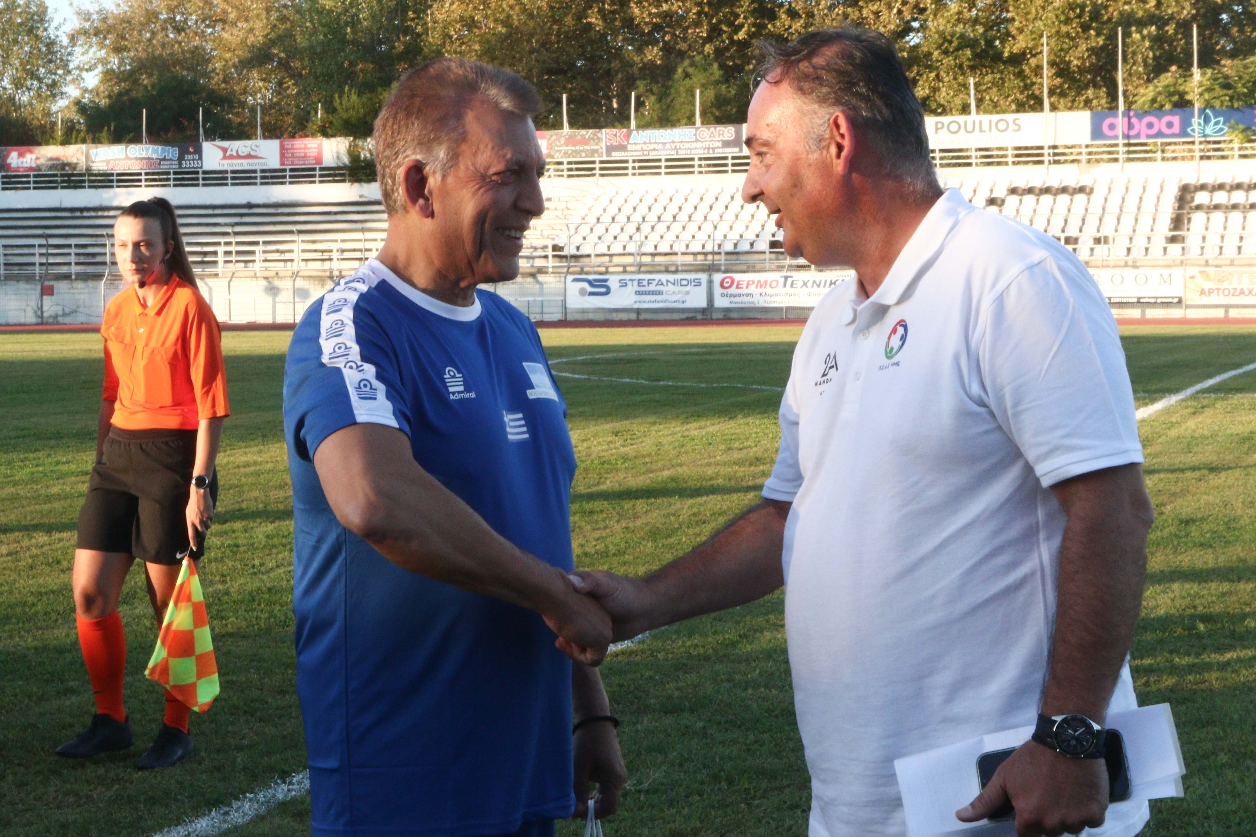 Με την επίλεκτη ομάδα του Πανελληνίου Συλλόγου Αθλουμένων Εργαζομένων στα μέσα ενημέρωσης αγωνίστηκαν τιμητικά αθλητές από την ποδοσφαιρική ομάδα του Σωματείου Ελλήνων Ηθοποιών και της αντίστοιχης του Υπουργείου Εθνικής Αμυνας.